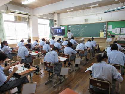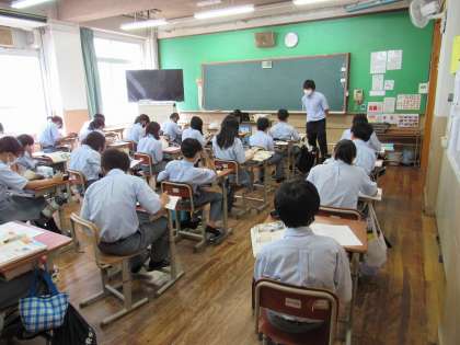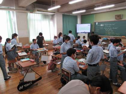 1年3組の社会の授業では、北アメリカ州の授業の振り返りをしました。