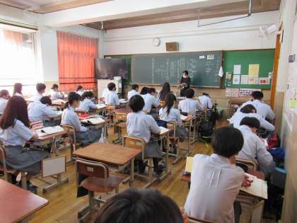 2年3組の国語の授業では、定期テストの範囲の確認をした後、語句(類義語、対義語、多義語)の学習をしました。