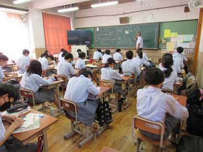 2年3組の国語の授業では、定期テスト対策として、文法の復習をしました。