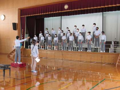 体育館で、本番さながら3年生の合唱コンクールに向けて、練習が行われました。