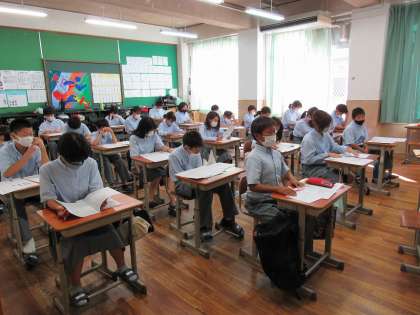 1年3組の国語の授業では、テスト返しと振り返りでした。