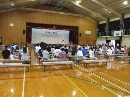 コロナ禍のため、今の3年生が小学6年生の時、開催されて後、3年ぶりの合唱交歓会です。