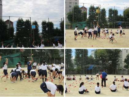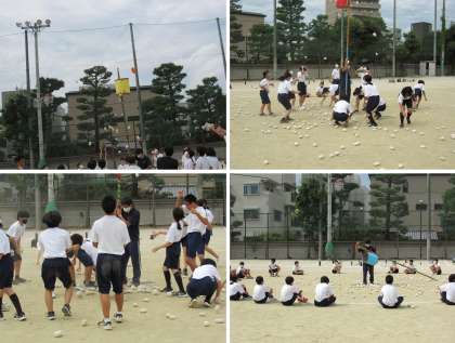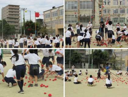 1年生は、3限目に学校祭(体育の部)の「玉入れ競技」の練習をしました。