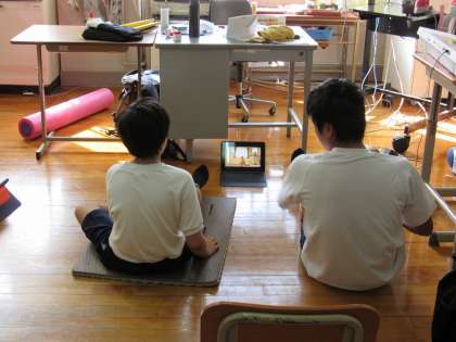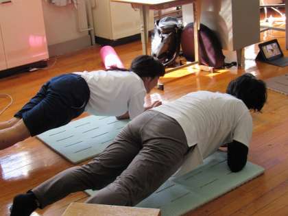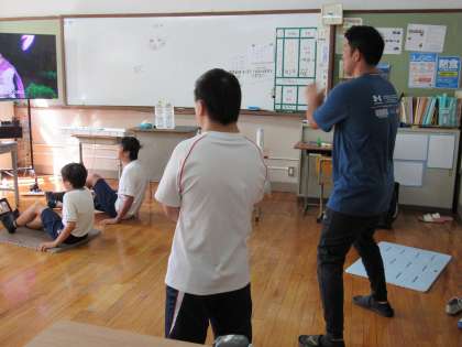1組の生活の授業では、動画に合わせて、基礎体力向上のためのトレーニングを行いました。