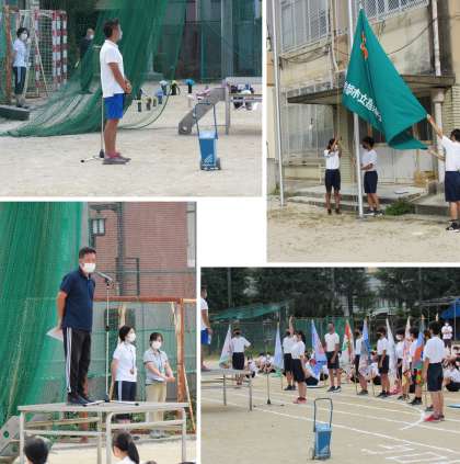 体育担当のI先生の開会宣言、生徒会旗掲揚から学校長の挨拶、選手宣誓と続きます。