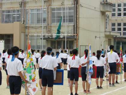 開会式 開会宣言、校歌静聴、生徒会旗掲揚