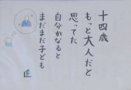 2年生の国語の単元で「日々、思うこと」を題材として創作したみなさんの短歌を校内に掲示しています。