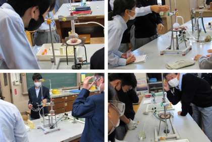 1年4組の理科の授業では、以前学んだ赤ワイン蒸留を実験で確認しました。