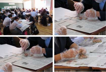 2年3組の理科の授業では、鶏の頭の解剖をして「脳」を確認しました。