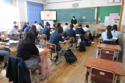 3年2組の英語の授業では、外国人が抱える困りごとに対する解決策を発表しました。