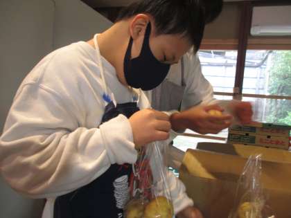 じゃがいもを決まったグラム数で詰める作業です。