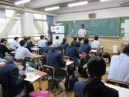 3年4組の理科の授業では、前回行った化学電池に関するプレゼンについて振返りをしました。