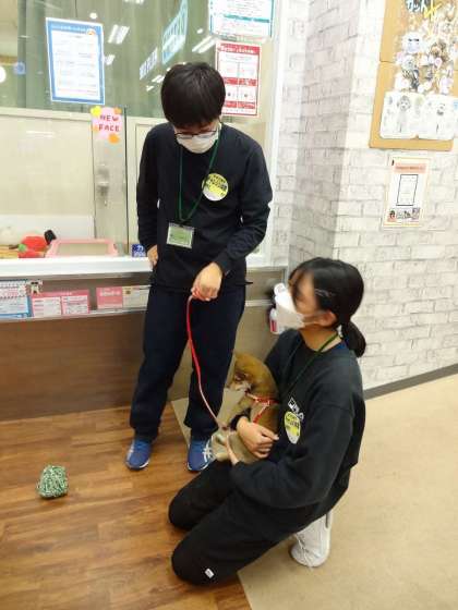 ドッグサロンでの体験です。犬に運動をさせています。