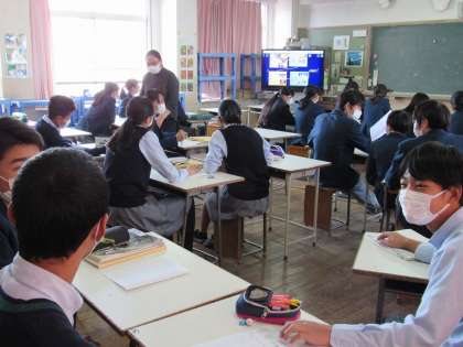 3年4組の英語の授業では,「マザーズララバイ」の音読に当たって、「平和って何か」ということを考え、続いて「ガンジー」についてのプレゼンの内容を理解に努めました。