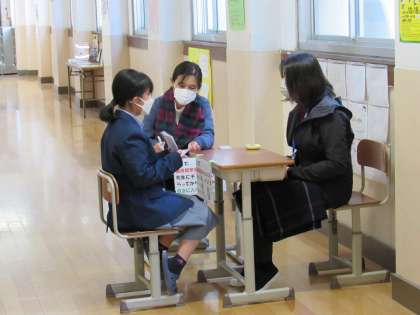1年2組の英語の授業では、友達や家族を紹介するパフォーマンステストを受けました。