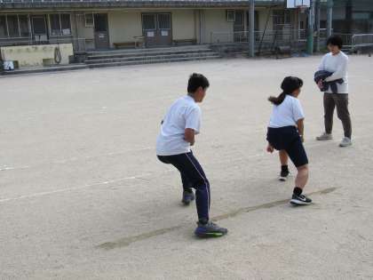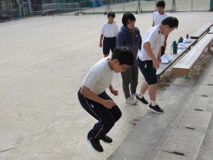 1組の体育の授業では、反復横跳びやジャンプなどの基礎体力向上トレーニングをしました。