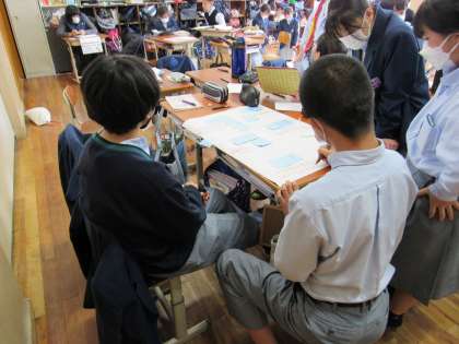 1年2組の国語の授業では、「話題や展開を捉えて話し合おう」というテーマで、意見と根拠を明確にしてグループディスカッションし、結果をまとめました。