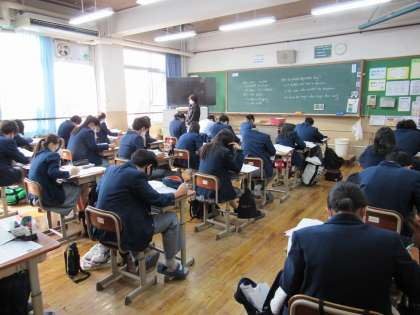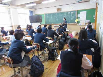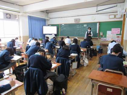 3年3組の英語の授業では、「ガンジー」の伝記の一部を読んで、内容理解に努めました。