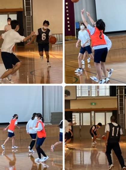 3年2組の体育の授業では、バスケットボールの練習とゲームをしました。