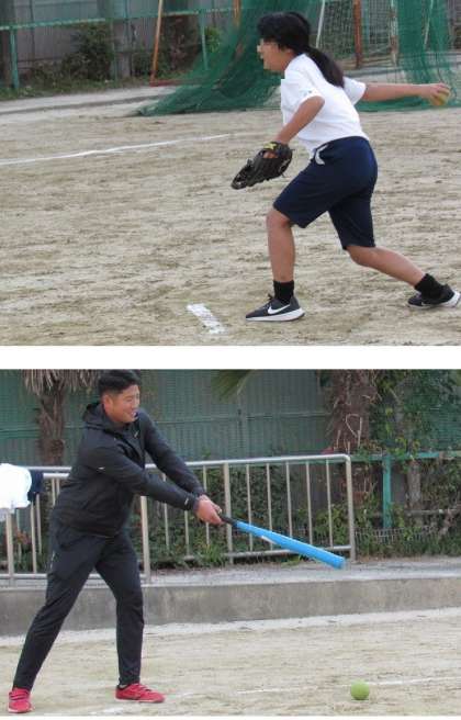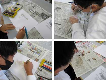 1組の体育の授業では、1限目にソフトボールの基礎練習、そして3限目に「マアジ」のスケッチに続き、解剖をしました。