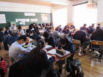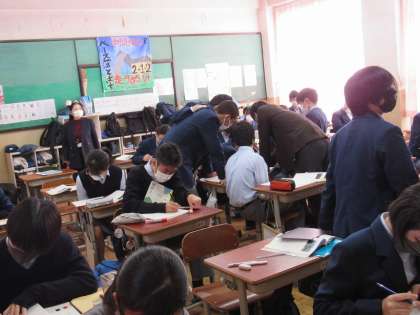 2年2組の国語の授業では、「安田喜憲作、説明的文章“モアイは語る〜地球の未来”」について、筆者の考えるイースター島と現代の私たちとの関わりを読取り、図や表を用いながらまとめ、交流しました。