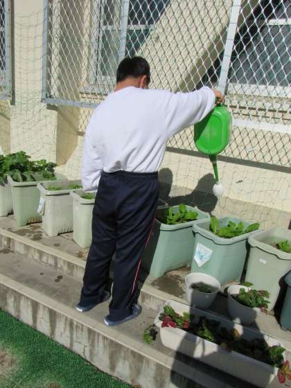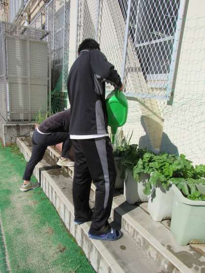 1組の生活の授業では、栽培している作物への水やりと雑草取りをしました。