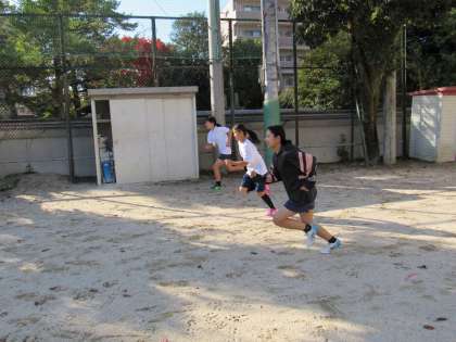 陸上競技部は、一所懸命走りこんでいました。