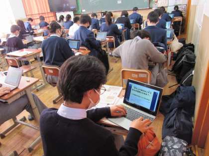 2年2組の社会の授業では、「なぜ江戸幕府は260年もの間、続いたのか」という問いに対して、学んだことの中から答えを導き出し、ロイロノートにまとめました。