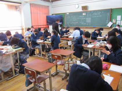 2年3組の数学の授業では、十面体のサイコロを使った実験を通じて確率について学びました。