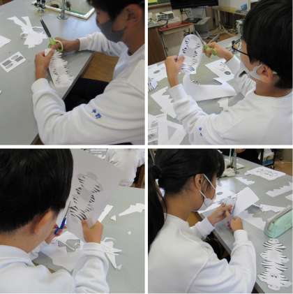 シマウマの立体完成図をイメージしながら、平面図形を切り抜きました。