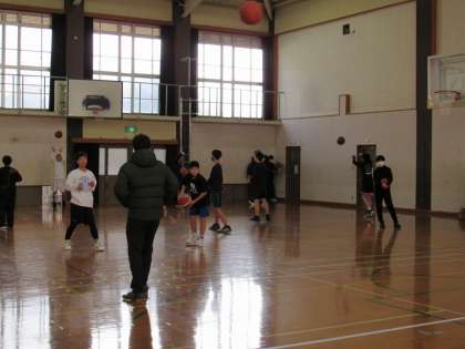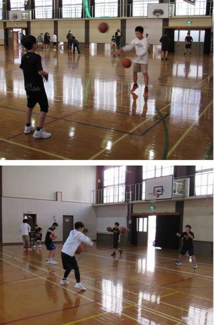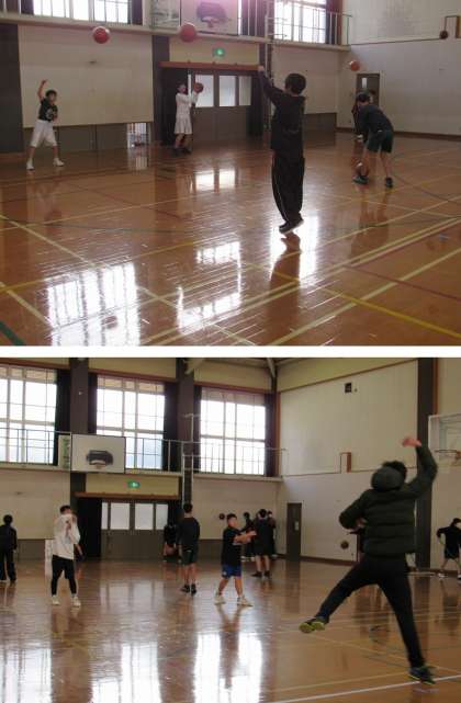 男子バスケットボール部は、鋭いパスとそれに対する素早く反応してキャッチする練習をしていました。
