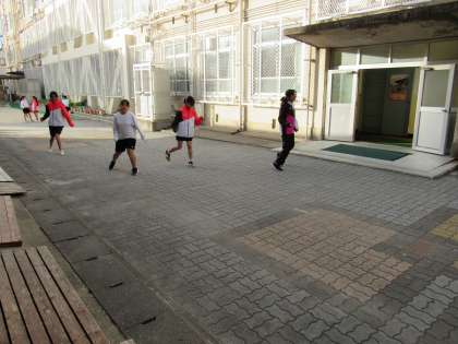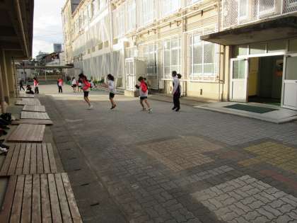バドミントン部は、ステップの練習に続き、体育館でフットワークの練習をしていました。