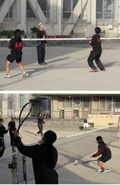 ソフトテニス部は、久々の練習を楽しんでいました。