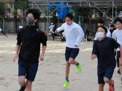 陸上競技部は、一所懸命走りこんだり、筋力トレーニングをしたりしていました。
