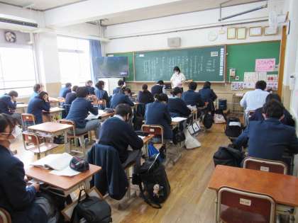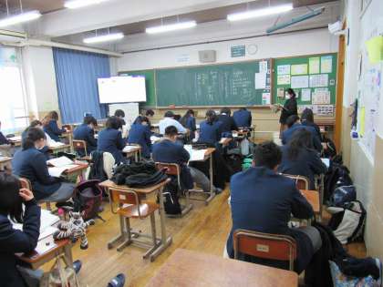 3年3組・4組の国語の授業では、冬休みの課題の確認に続き、「鷲田清一の論説文“誰かの代わりに”」について、抽象的な概念を表す語句の文脈上の意味に注意しながら読み解きました。