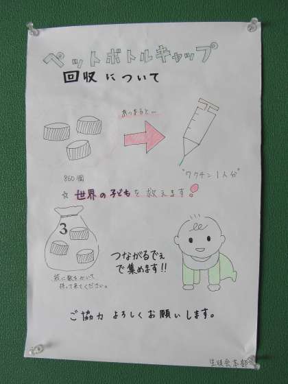 本校では、生徒会を中心に、ペットボトルキャップの回収を呼び掛けています。