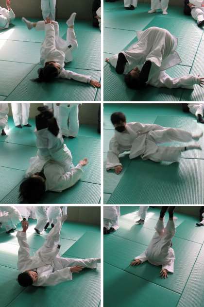1年2組の体育の授業では、柔道の受け身(後ろ受け身・横受け身・前回り受け身)のテストを受けました。