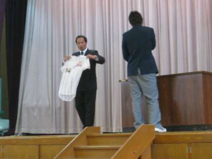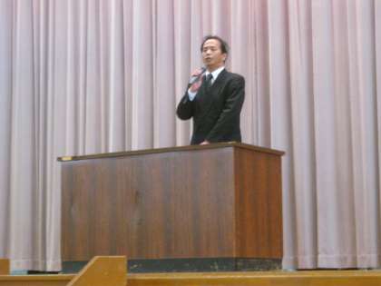 写真右:校長先生のお話