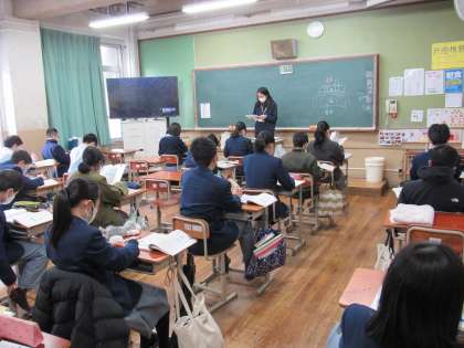1年3組の数学の授業では、データを分析し、適切な値はどれになるのか考えました。