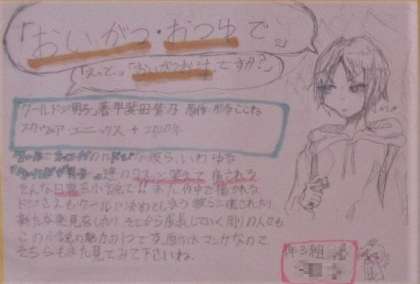 今回紹介するのは、1年3組のSさん(上・「クールドジ男子」)、Tさん(中・「逃走中」)、Kさん(下・「ベイマックス」)の作品です。