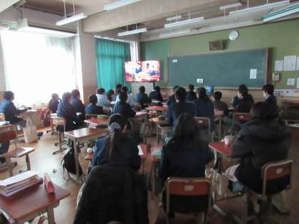 1年2組の英語の授業では、映画「イルカと少年」を鑑賞し、英語の聞き取りと登場人物の分析をしました。