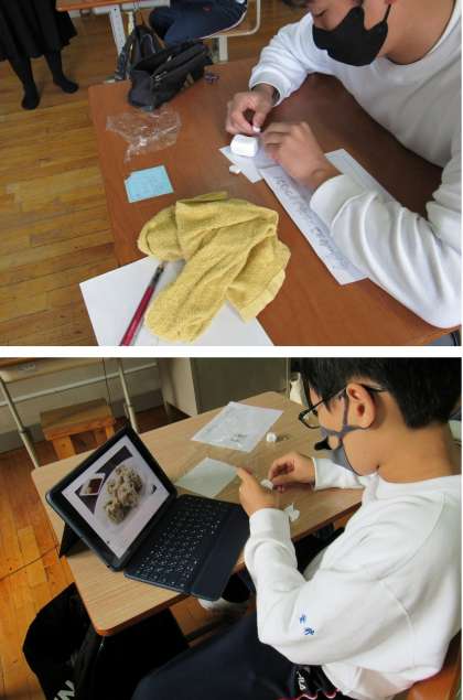 1組の美術の授業では、軽量紙粘土と磁石を使って、マグネット(文具)づくりをしました。次回、彩色します。