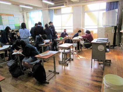 3年4組の授業では、明日の私学入試に備え、受験に臨む際の心構えについて確認しました。