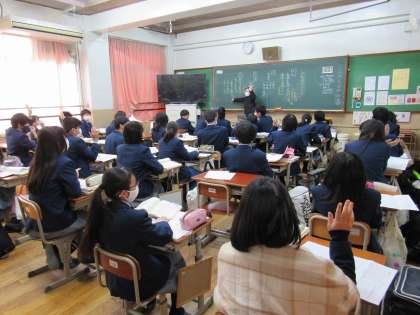 2年3組の国語の授業では、演習問題を通じて助動詞の働きについて理解を深めました。
