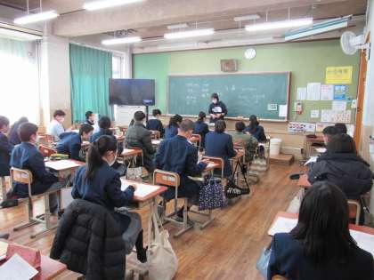 1年4組の社会の授業では、テスト返しに続いて解説を受けました。
