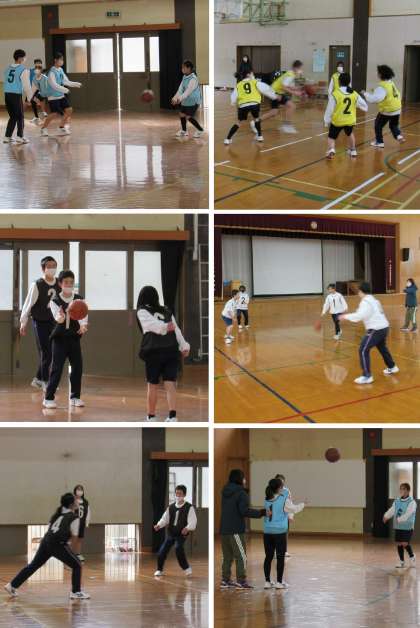 1年2組の体育の授業では、バスケットボールのシュートの練習に続いて、3on3でゲームをしました。