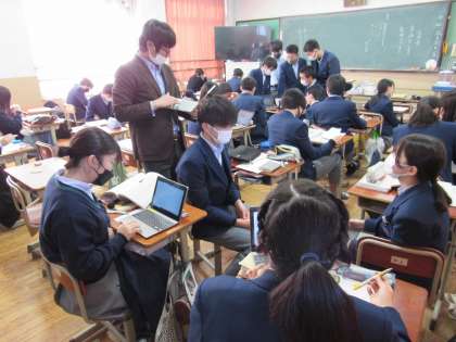 2年2組の国語の授業では、新聞の構成を学習することを目的に、過日行った校外学習で訪れた場所を一つは入れるという条件のもと、嘉楽中学校区や京都のことについてあまり知らない大人に対して紹介する新聞づくりに取り組みました。