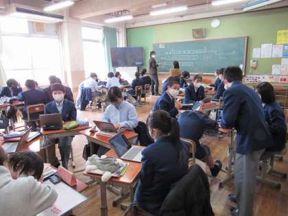 1年4組の数学の授業では、2年生で習う「式の展開」の内容を先取りして学習しました。