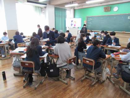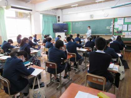 1年2組の国語の授業では、京都市が取り組んでいるSDG’sを事前に学習し、過日行った校外学習で調査した結果について国語学習を通して発表する準備をしました。