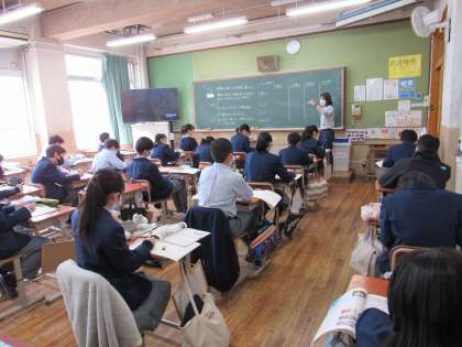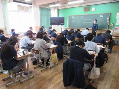 1年2組の保健体育の授業では、「運動やスポーツの多様な楽しみ方を知り、これからのスポーツライフを考える」というテーマで、運動やスポーツをする目的や年代別に応じたその楽しみ方について考えました。